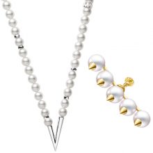 3.5ミリのアコヤパールと留め具を自由に組み合わせられるコレクション。パールをホールドする留め具の位置によってさまざまなつけ方が楽しめます。