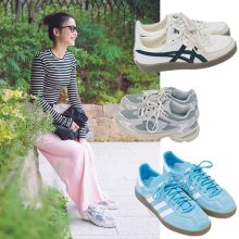 「ずっとヒール派だったのですが、子どもが産まれてからはスニーカーが定番アイテムに。VERYのスナップやインスタを参考に、カジュアルでもキレイめに見えるバランスを意識しています。また、洋服の一部として長く愛用できるよう、出掛ける前に防水スプレーをかけて、汚れたらブラシやソール用の消しゴムで落とすなど小まめにお手入れしています」須藤澪さん/会社員・34歳(3歳女の子ママ)
