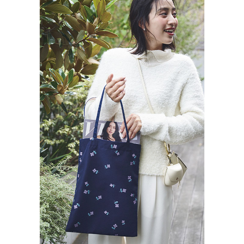 肩にかけたときにスッキリ見える、スタイリッシュな縦型フォルム。A4の書類やPC、さらにはVERYまでもすっぽり収納できる実用的なサイズが頼もしい!