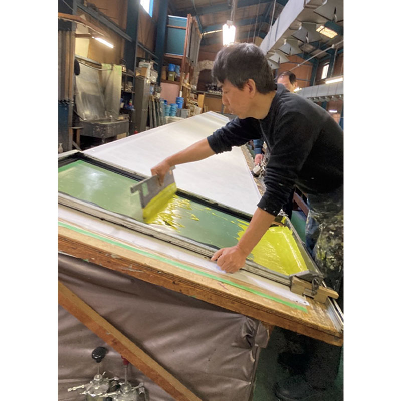 “lame clover”は職人さんによる手刷りプリント。光沢のあるラメ感と立体が特徴の特殊加工で、刺繍のような繊細さを残した精度の高さが魅力です。