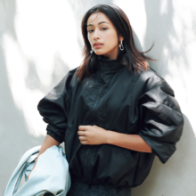 ブルゾン¥91,300(ハイク╱ボウルズ)ワンピース¥24,200(アンスクリア╱アマン)イヤリング¥8,800(アビステ)バッグ¥30,030(ミニットミュート╱HANA SHOWROOM)