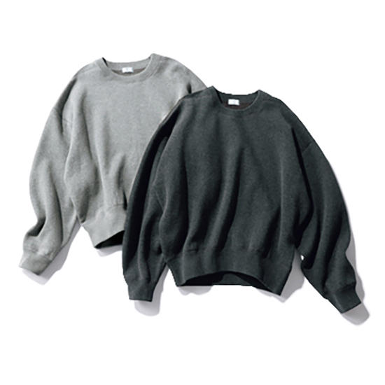 スウェットのように見えて、実はニット素材のプルオーバー。裏地にはフワフワとした短い毛並みのファーをあしらい、軽やかで暖かな着心地です。コンパクトな首元と、ふんわりとしたボリュームのある袖で上品に着られます。ヒップにかかる前後差のある丈感で、どんなボトムとも好相性です。¥14,960~16,060