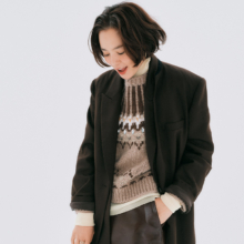 お上品すぎないビッグシルエットのジャケットは、ジュエリーやブローチでコンサバ感をプラスして学校スタイルに。スカートと合わせてもマニッシュな印象に着こなせます。