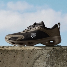 ナイロンとスエード素材のコントラストが足元を洗練。