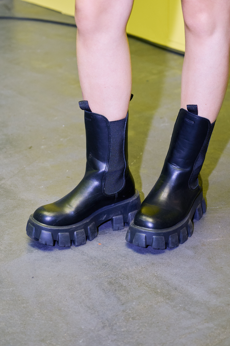 メンズライクなビッグジャケットはミニ丈×ブーツでバランスよく