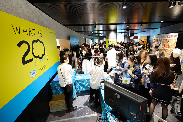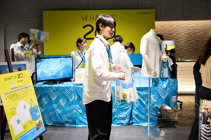「サントリー天然水」は、アパレルブランドCLOUDYとのコラボショップ『WHAT IS 20?』の商品を販売。来場者に冷えた「サントリー天然水」やうちわ、ステッカーなどのプレゼントも。「20年後の世界でも、安心安全で美味しい水が飲めていること」という未来への願いを込めた取り組みを紹介しました。