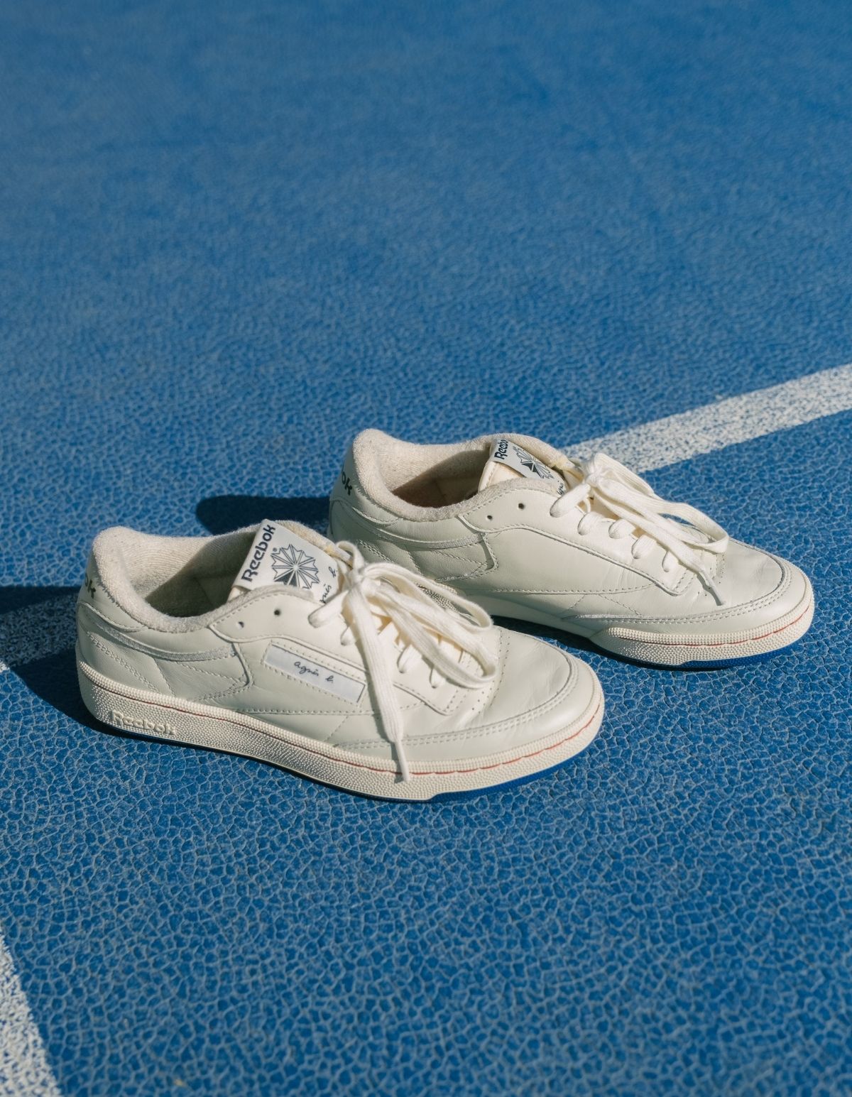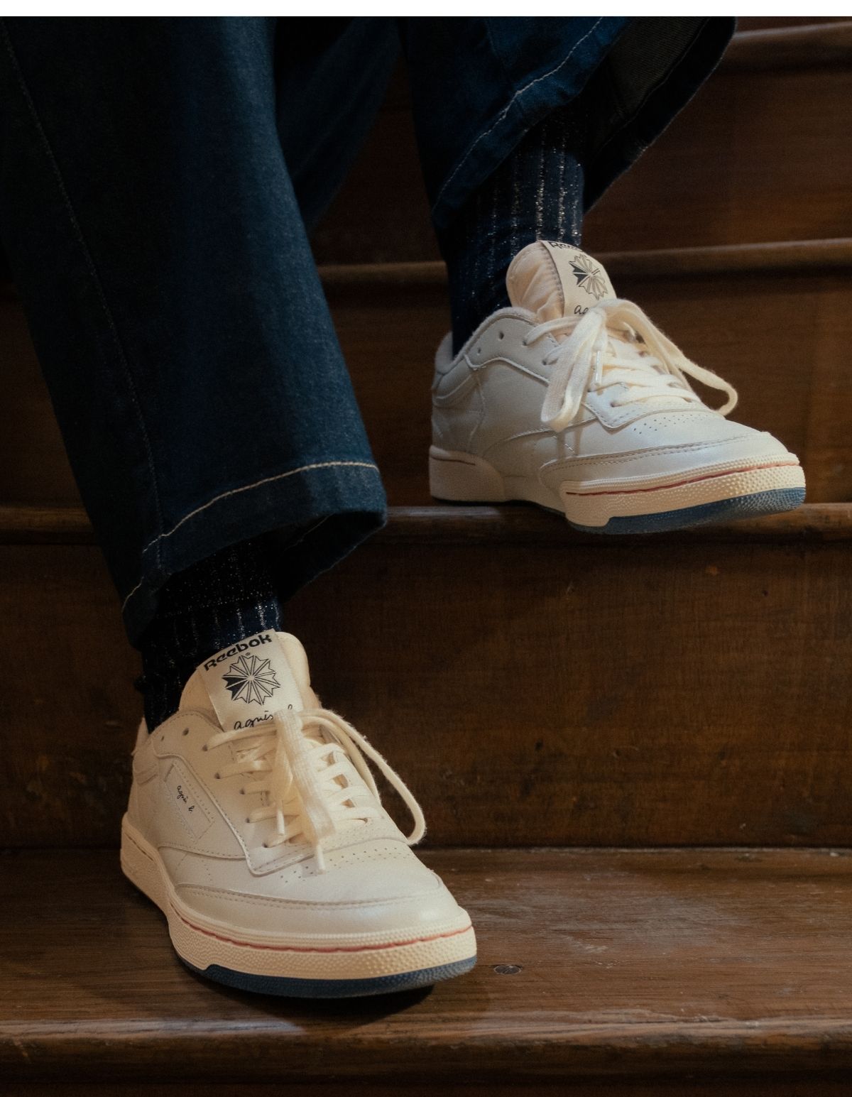 agnes b.(アニエスベー)とReebok(リーボック)が初のコラボレーション! ミニマルなデザインのなかに遊び心が効いたスニーカーは、キレイめママ必見です。完売前にぜひチェックして。