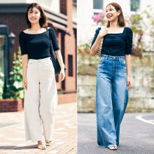 オシャレに見えるワントーンコーデが気分で、ホワイトデニムに白ブラウスを合わせて着てみました。グレージュのジャケットや小物で季節感をプラス。白の比率が高いので、きれいめなお仕事シーンや、かっちりめのランチ会に着て行きたいです。中に着たブラウスは、繊細なフリルが首元や袖口から見えるのがポイント。これだけで、ジャケット×デニムの王道コーデをぐっと優しい雰囲気にしてくれます」編集菅原圭絵・35歳(152cm/5歳の女の子ママ)