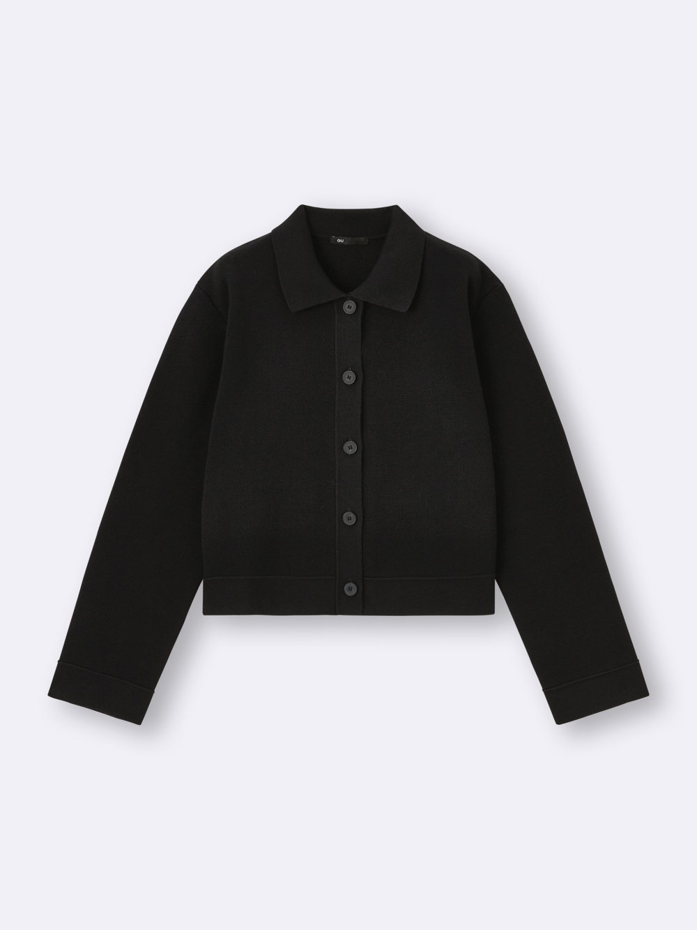 ボックスシルエットを作り出す厚めの生地により、上半身がコンパクトに見えて、肩がけしても素敵。短めの着丈に設計されているため、ボリュームのあるワイドパンツやフレアスカートとも好相性!存在感のある大きめボタンはコーデのアクセントに一役買ってくれそう。マシンウォッシャブルなのもうれしいところ。ミラノリブポロカーディガン¥2,990(GU)