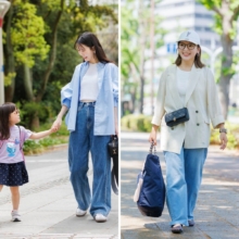デニムパンツ¥27,500(ヤヌーク/カイタックインターナショナル)ニット¥37,400(アダワス×EZ/ショールーム セッション)メガネ¥46,200(アイヴァン/アイヴァン 東京ギャラリー)ピアス¥48,400(ブランイリス/ブランイリス トーキョー)ショルダーバッグ¥66,000(ザハイライツ)トートバッグ¥29,700(リアローシュ/ギャルリー・ヴィー 丸の内店)パンプス¥22,000(オデット エ オディール/オデット エ オディール 新宿店)