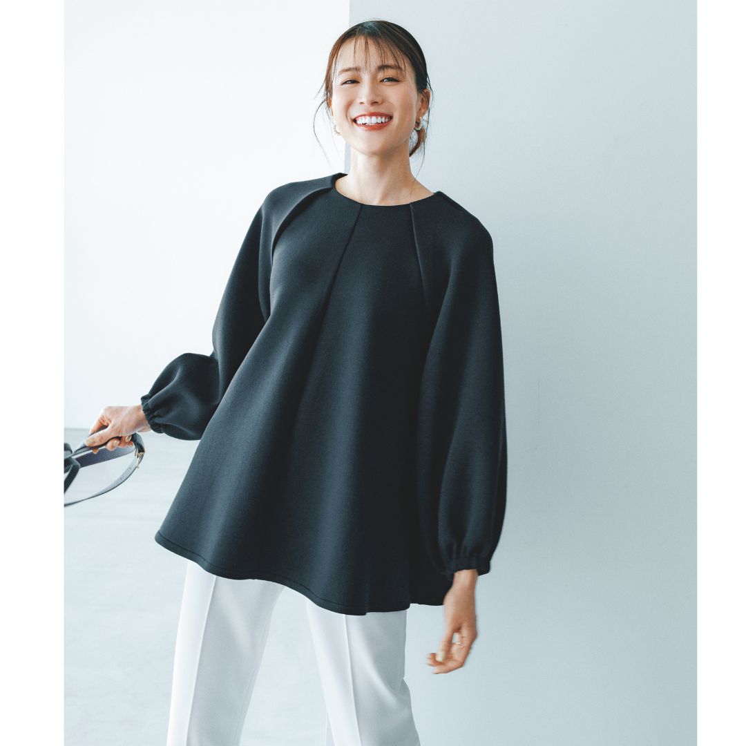 プルオーバー¥17,600(スリースクエア)パンツ¥8,990(アンフィーロ)バッグ¥11,900(チャールズ&キース/ チャールズ&キース ジャパン)カチューシャ¥9,350(ジャルダンドゥ シュブー)ピアス¥8,640(アビステ)