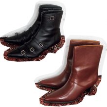 ブーツ〈H5.5㎝〉¥49,500(ペリーコ サニー╱アマン)ワンピース¥57,200(アキラナカ)肩にかけたデニムジャケット¥63,800(ホリデイ╱ホリデイ╱フラッグシップサロン オフィス)ピアス¥19,250(マユコ)