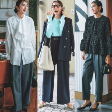 子どもが主役のハレの日、ママは“その後”も着回せるアイテムを活用!オーセンティックなジャケットは、ボウタイブラウスを投入すればハレの日仕様に。ボトムスは、ワイドパンツで今っぽさと華やかさを足すのが正解です。