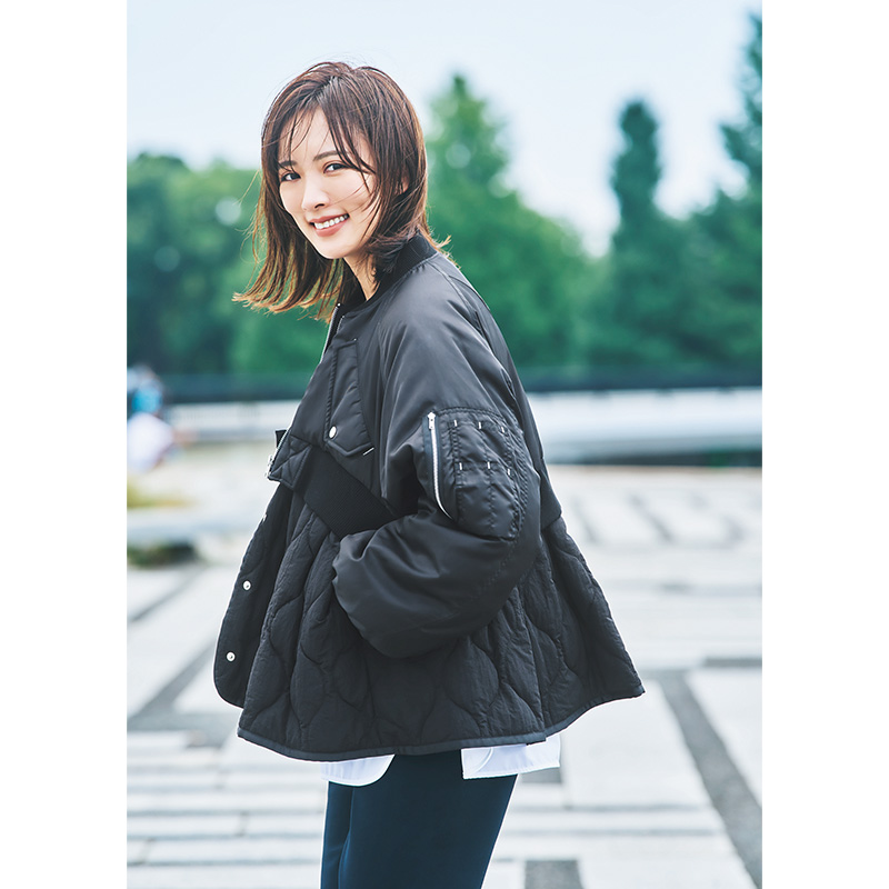 スタイリッシュなブルゾンもAラインで柔和な印象に