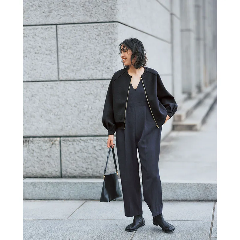 ブルゾン¥39,600 オールインワン¥29,700(ともにシュガー)バッグ¥82,500(マエストソ/アマン)ブーツ¥46,200(シーセイ/アイネックス)ピアス¥39,600(リューク)