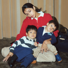 「ママ、ビデオ撮ってね」と息子との約束通り撮影係を。荷物運びに屈んだりとせわしないから、楽ちんなベロアパンツが頼りになる!スウェット¥39,600(キャサリン ハムネット×ロンハーマン/ロンハーマン)パンツ¥24,200(グレーコード/ゲストリスト)ピアス¥40,700(マリハ)ウォレットケース¥18,150(エジュー)バッグ¥26,400(フェイラー)スニーカー¥15,400(アディダス オリジナルス/アディダス コールセンター)