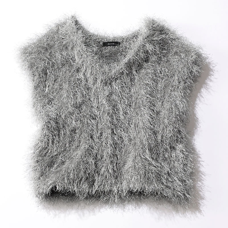細かなラメ入りで一枚でも華やか。ベスト¥19,800(アルアバイル)