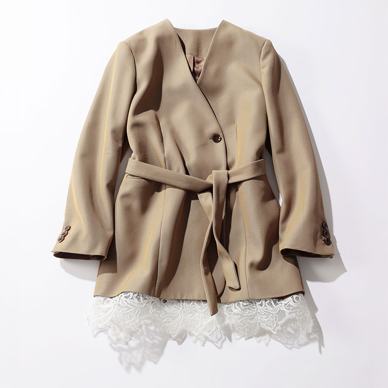 裾レースとベルトが取り外し可能な3WAYタイプ。ジャケット¥41,800(プランクプロジェクト/プランクプロジェクト 青山店)
