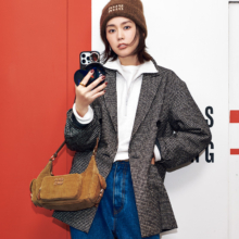 ツイードジャコット¥41,800(プランクプロジェクト/プランクプロジェクト 青山店)ロゴTシャツ¥16,500(アンスクリア/アマン)デニムパンツ¥37,400(アナイ)ネックレス¥132,000リング¥41,800(ともにブランイリス/ブランイリス トーキョー)バッグ¥42,900(メアリオルターナ/デ・プレ)トートバッグ¥15,400(フェイラー)