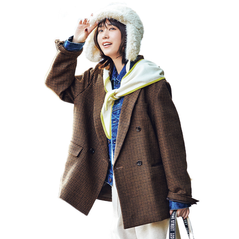 スウェットやニットなど地厚なインナーを着ても窮屈感がなく疲れないのに、正統派な品の良さも損なわない、今っぽいオーバーシルエットが絶妙。生地の上質さやクラシカルな雰囲気の千鳥格子が大人に引き上げてくれるから、カジュアルな日はもちろん、通勤や行事などきちんとしたい日もさりげなく華やかに。