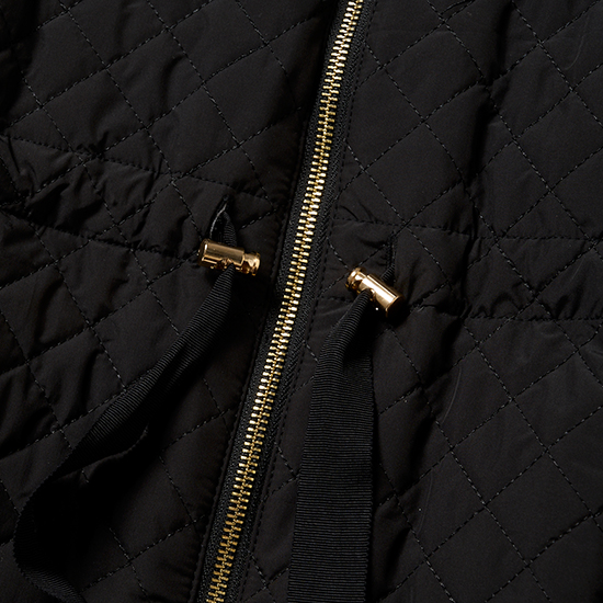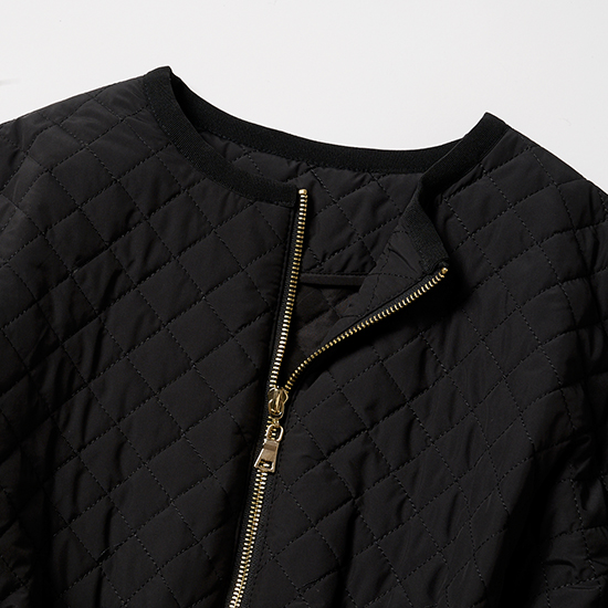 ふんわりとしたボリューム袖と高め位置で絞れるウエストラインが、羽織るだけで華やぎを添えるキルティングコート。首元をすっきりと見せるノーカラーが上品さを引き立て、グログランテープでウエストを好みのシルエットに調整できるので、スタイルアップ効果も抜群。撥水素材に加え、着膨れしにくい高保温機能のある中綿をINしているので、雨の日はもちろん、冬の寒さにも心強い一枚です。¥27,500