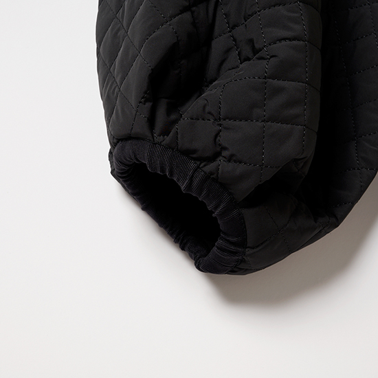 寒い冬の公園にもぴったりな軽くて暖かいキルティングコート。一見カジュアルに見えそうですが、バルーン袖や高めの位置で絞れるウエスト部分の甘ディテールのおかげで、羽織るだけで華やかさがプラスされます。ニット×デニムのワンツーコーデに合わせても、黒ならではの品の良さで大人っぽくまとまります。撥水素材なので、雨の日の送迎にも◎。