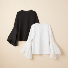 「首元のパールボタンが品良く見えて、ネックレスいらずなのがありがたいブラウス。母業でも自分らしい要素を取り入れるコーデを意識していて、ブラウスの下にレースのインナーを仕込みました。校内に入ってしまえば靴を脱ぐのでスニーカー合わせでも大丈夫。年中頼れるペプラムブラウスですが、今の時期にはオール黒でカッコよく着こなすのが気分です」ライター高萩里奈さん・39歳(165cm/11歳、7歳の女の子ママ)