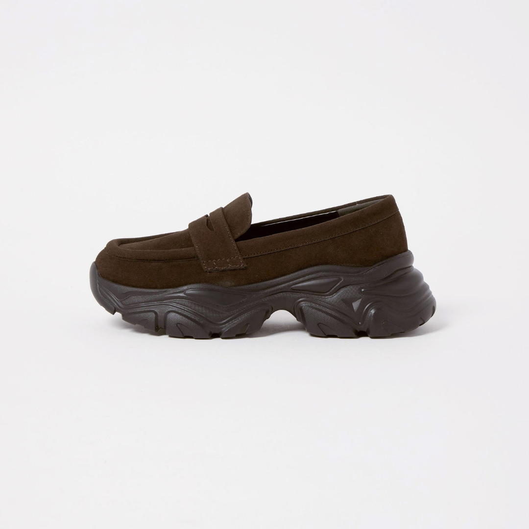 クラシカルなローファーデザインに、ボリュームソールを組み合わせた今季らしい一足。6.5㎝の厚底ソールでスタイルアップを叶えつつ、見た目以上に軽量で歩きやすいのが魅力です。きれいめコーデにはもちろん、デニムなどのカジュアルに合わせてもこなれ感が出る万能さで、朝の送迎から通勤まで毎日頼れる一足。