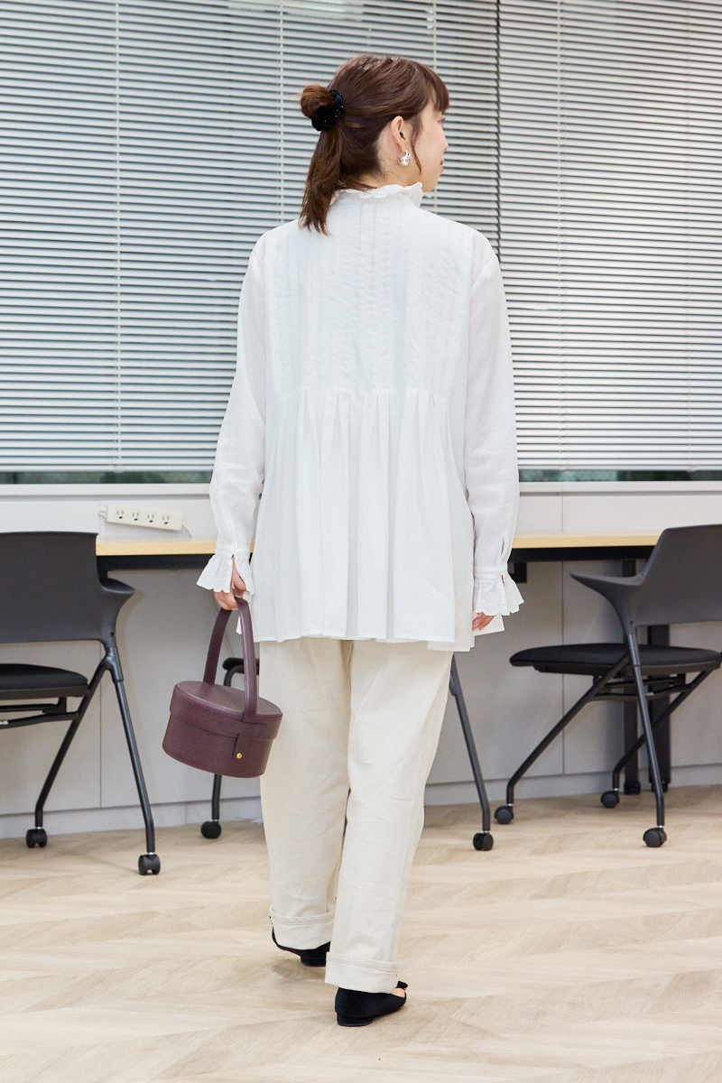 jacket/Arpege story tops/[L’AUBE BLANC]ジオメトリックレースブラウス pants/YANUK bag/LOUIS VUITTON shoes/TSURU by MARIKO OIKAWA
