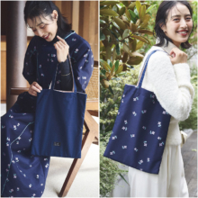「『主張し過ぎないけど、隠しきれない可愛さも秘めている』そんな思いを込めて作ったバッグです。どんな服装のときも持ちやすく、合わせやすく。華美にならず、学校行事などオケージョンスタイルにも活躍できるようネイビーベースに。VERYやPCはもちろん、保護者会などで配られるA4プリントを折らずに収納できるサイズにしました。薄いので、いつものバッグと一緒に持ち歩き用としても使えます! 肩掛けにも手持ちにもちょうどよく使える長さなのもポイントです」