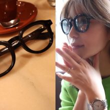 思い切って少し大きめのフレームを選べば、小顔効果も狙えて一石二鳥。目元が透けるカラーレンズはモノトーンコーデに合わせても重たくならず、無理なく洒落感ゲット!