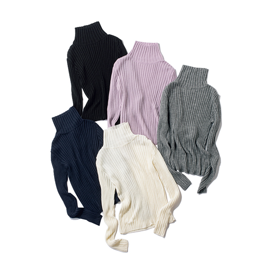 寒色カラーのニットで