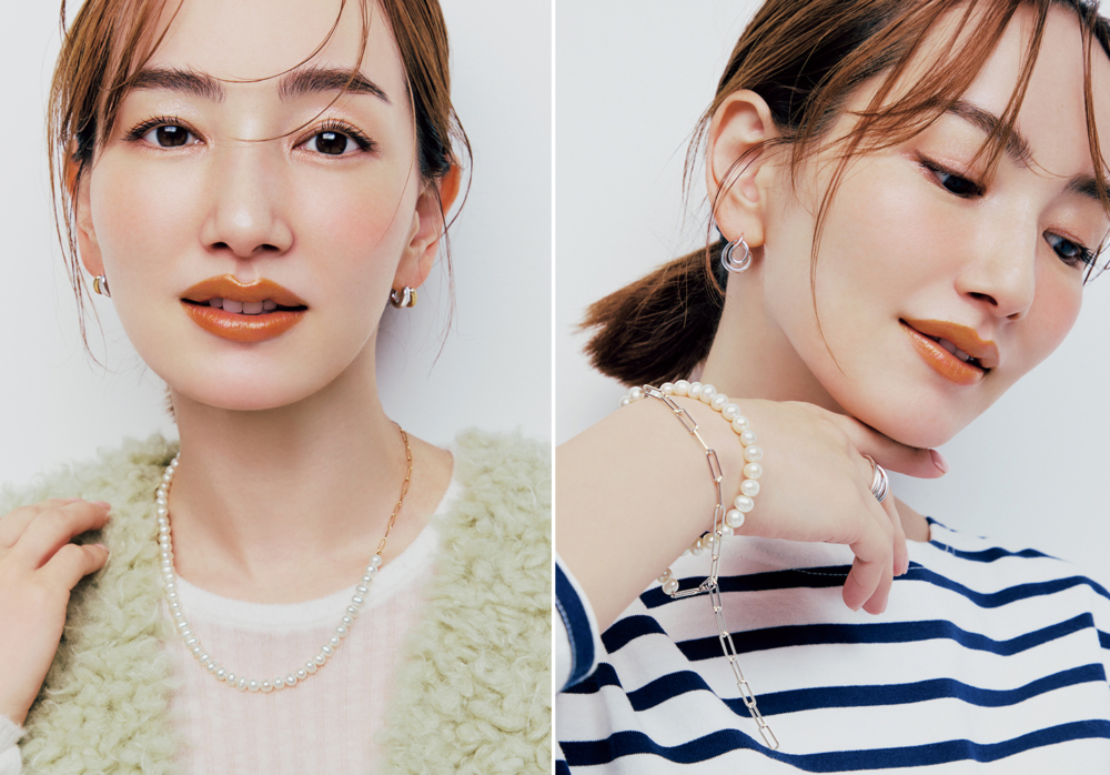 オケージョン↔デイリーにシームレスに使える汎用性の高さと、アレンジ次第でさまざまな楽しみ方が広がるパールネックレスに仕上がりました。チェーン部分があることで生まれる軽やかな魅力を、ぜひ体感してーMAMI