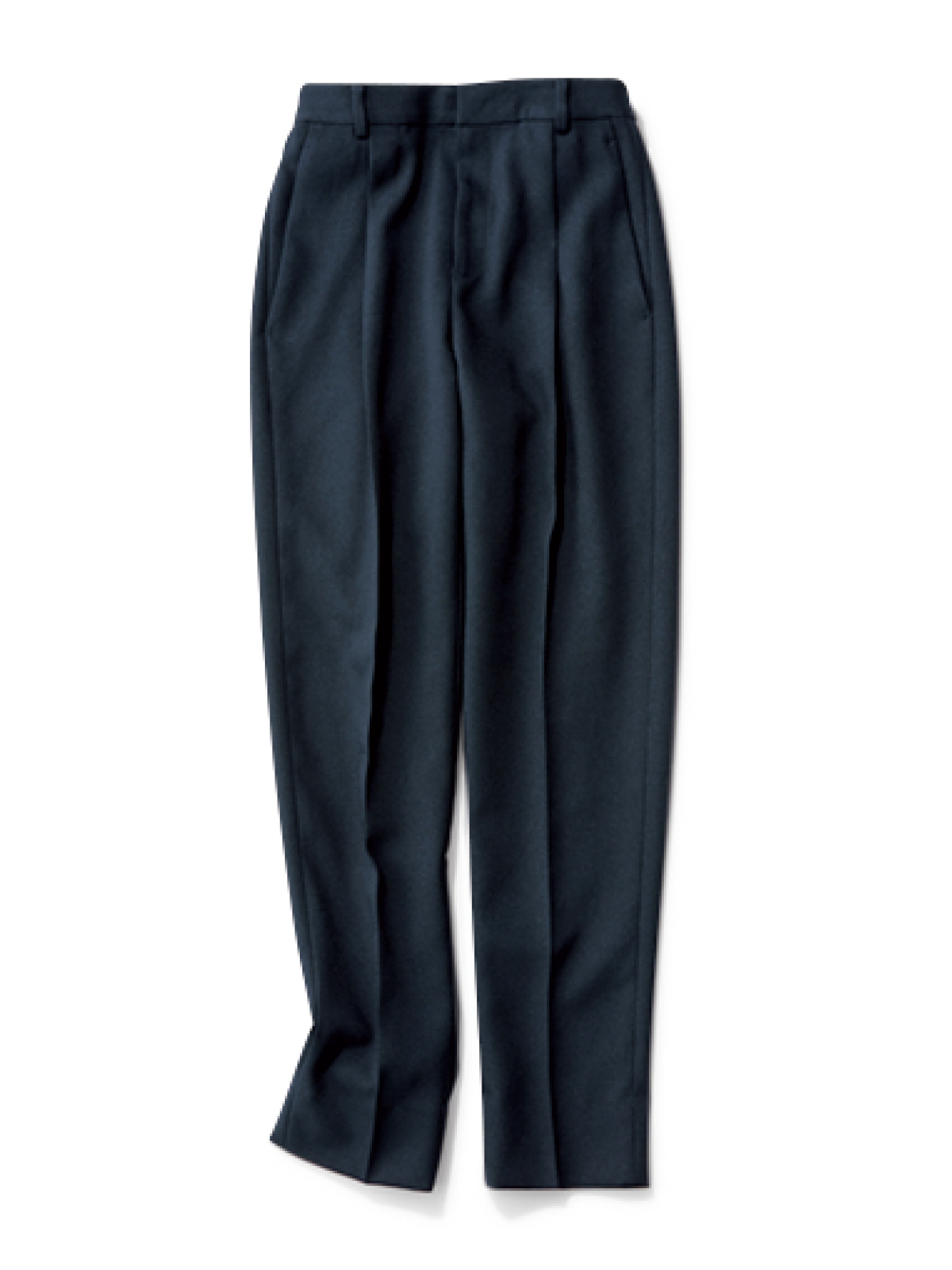 ボリューム感のあるツイードのペプラムジレに、細身テーパードでメリハリを。甘さを抑えつつスタイルアップにも一役買ってくれる、パンツ軸の好感度ネイビーは初めましてシーズンに活躍必至! オーダーパンツ¥22,000〜(KASHIYAMA) ツイードジレ¥28,600(アルページュストーリー プレスルーム) シャツ¥18,700(マイストラーダ プレスルーム) ヘッドバンド¥24,530(フランス ラックス╱ピーアンドティートレーディング) ピアス¥27,720(フェルセラ╱ZUTTOHOLIC) ローファー¥18,700(ダイアナ╱ダイアナ 銀座本店) バッグ¥19,800(ツル バイ マリコ オイカワ)