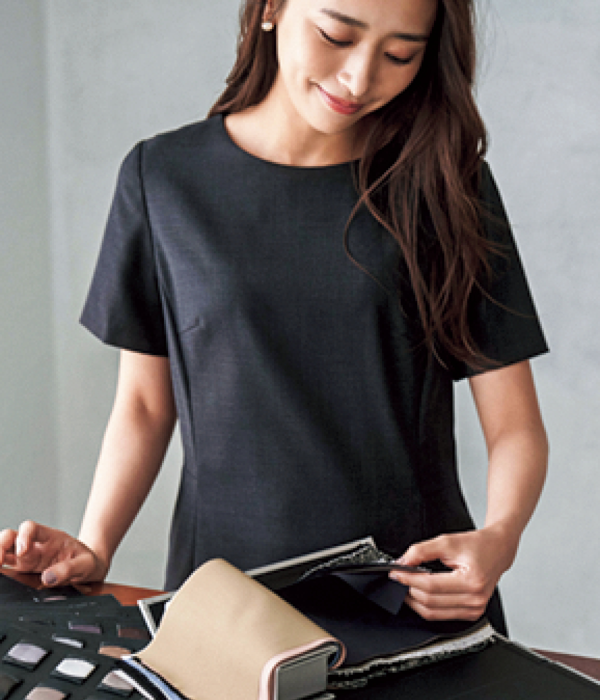 アウトした時、後ろ姿に自信が持てるよう着丈を5cmプラス。ストレッチが利いていて、シワになりにくい綿混素材を使用。普段使いしやすいブラウスまでオーダーできるのがうれしい!