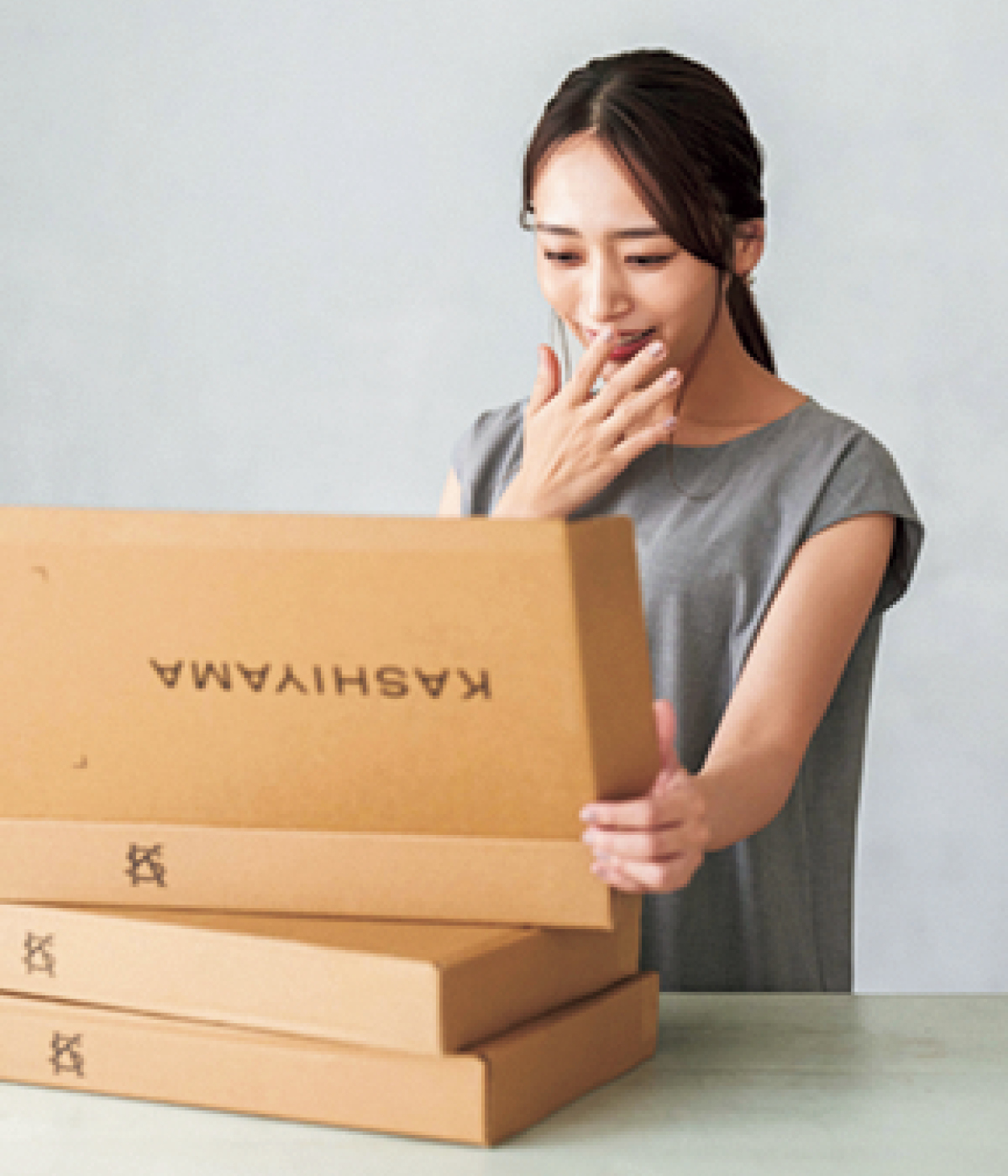 採寸から最短1週間で届きます。不在時は宅配ボックスにお届けも可能。わざわざお店に行かなくても受け取ることができるんです。
