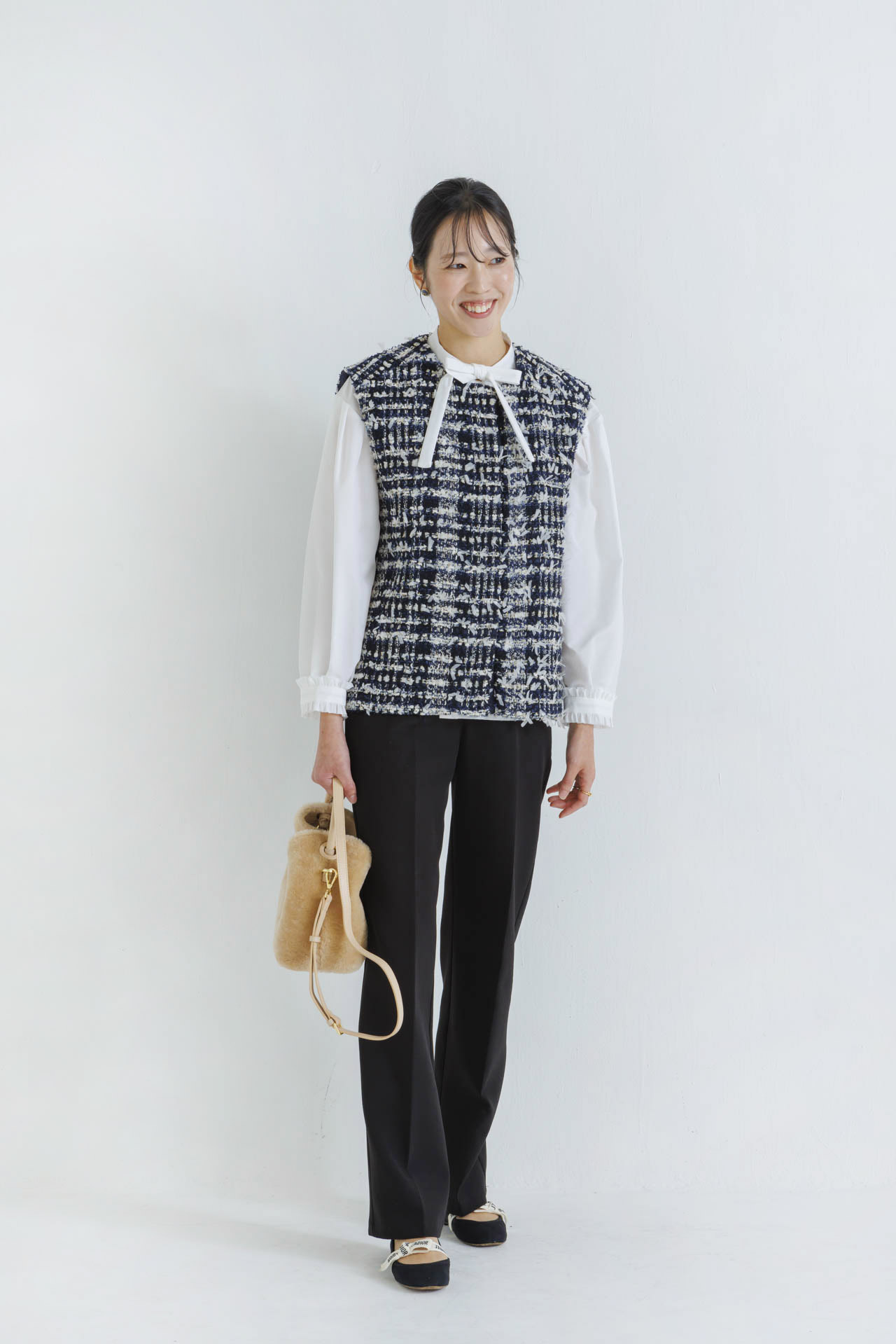 outer & blouse/yori gilet/OHGA pants/Re:EDIT bag/Elleme shoes/DIOR