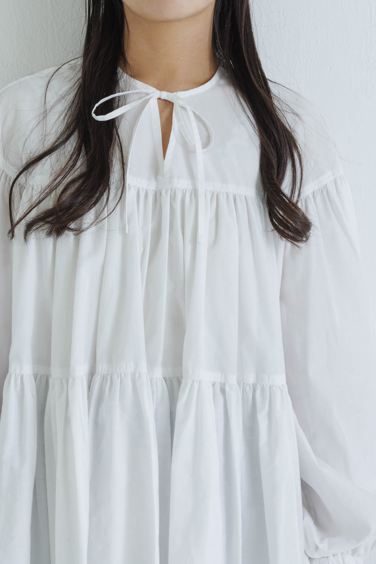 控えめなフリル襟とボリュームのあるカットオフレース袖のバランスが◎!