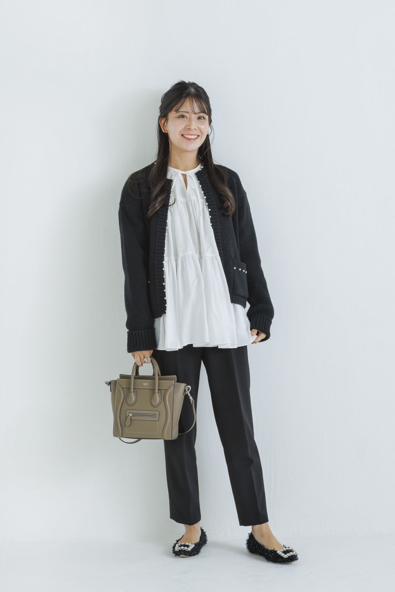 blouse/yori cardigan/TSURU By MARIKO OIKAWA pants/Mila Owen bag/CELINE shoes/pippichic