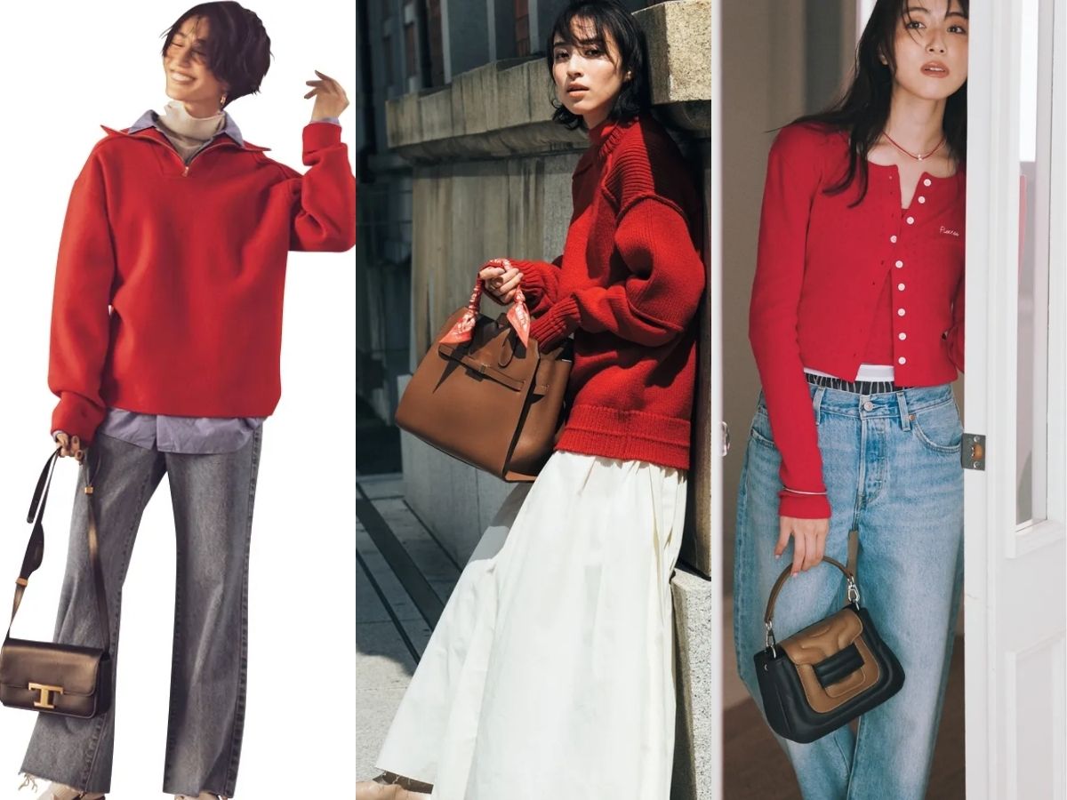 クリスマスを終えても、年末年始の華やか服として活躍させられる赤ニット。1枚あると便利なので、ぜひトライしてみて!