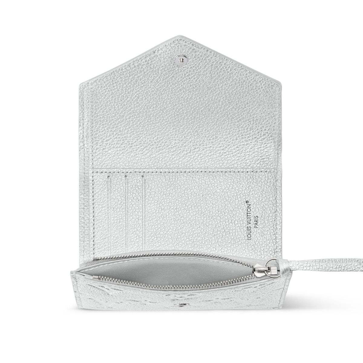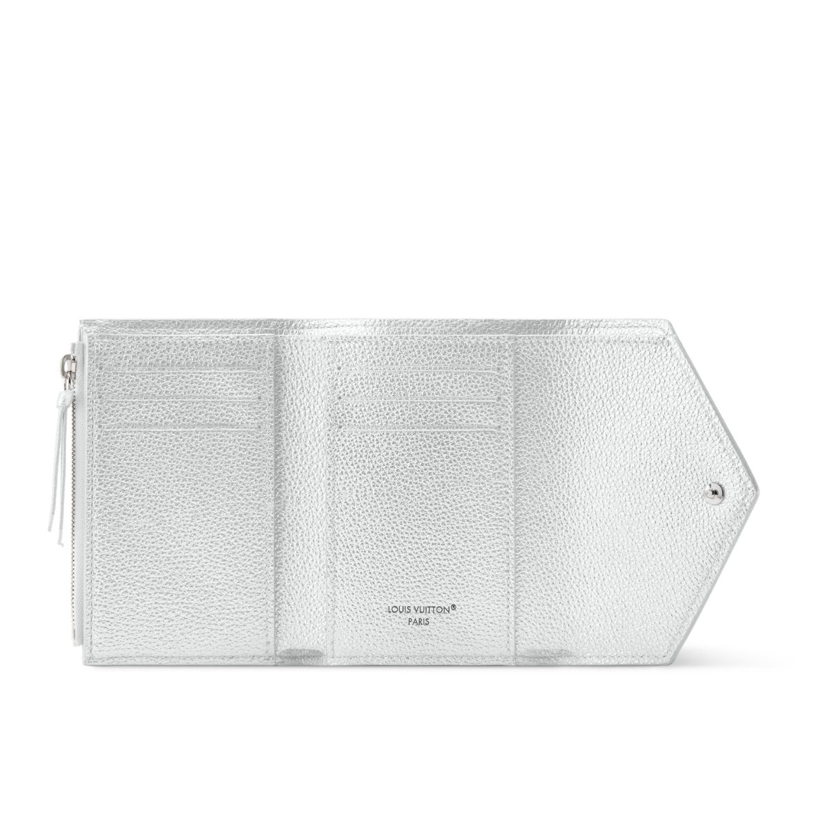 メソンブランドのアイコニックなモノグラム・パターンがエンボス加工された三つ折り財布。シルバーは、風水では守りの力と開運の力を持ち合わせた運気アップに効果的な色と言われていて、金運だけでなくチャンスを引き寄せたい人におすすめ! 収納力も抜群です。
