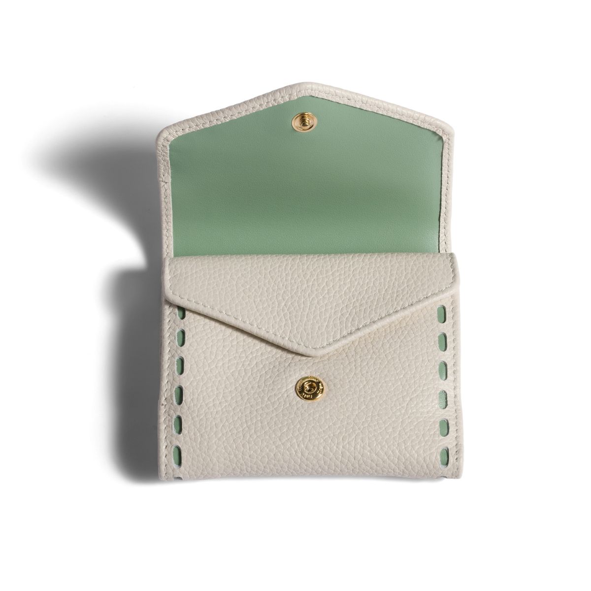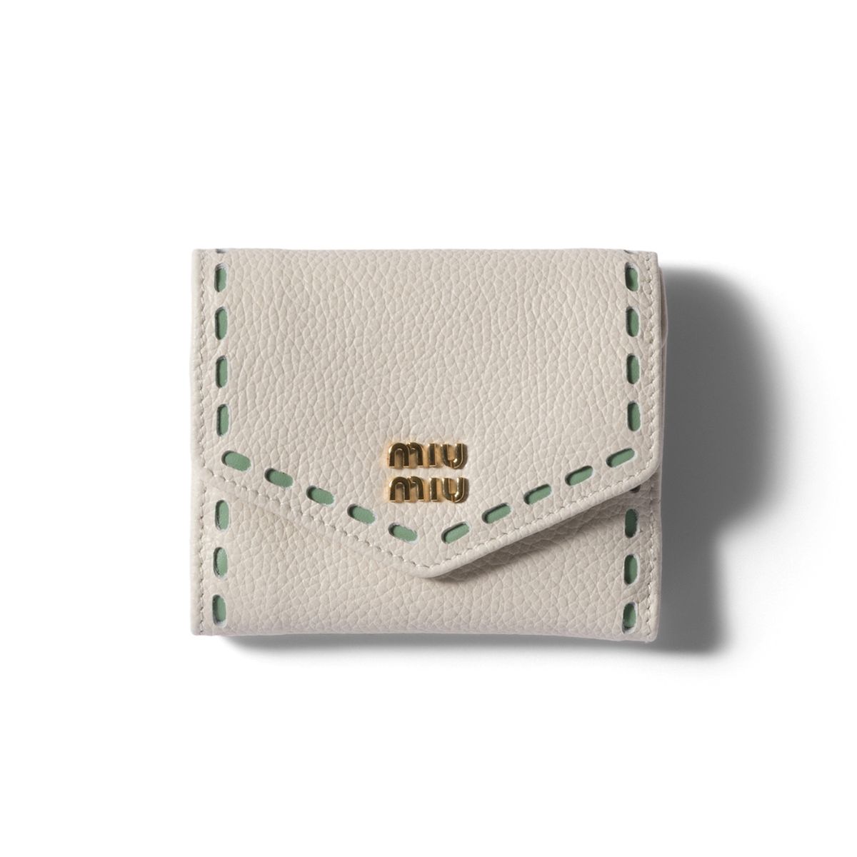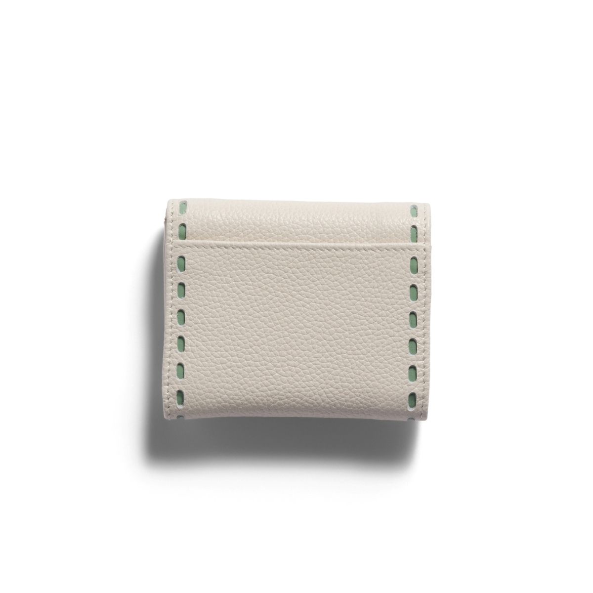カーフレザーの柔らかく滑らかな質感が上品な新作ウォレット。グリーンのステッチが爽やかで明るい印象を与えます。財布を開くと現れる、ステッチカラーとリンクした裏地のディテールには誰もが心惹かれるはず! 手のひらになじむ小ぶりなサイズで、小さなバッグにもすっぽりおさまります。
