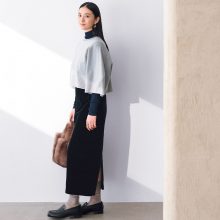 グレースウェット=カジュアルと思い込んでいるのはもったいない!質感さえ厳選すれば、通勤ワードローブにもすんなりなじむ頼れる存在に。変形パンツのモード感を引き立てながら、抜け感のある大人の余裕を演出。スウェット特有のごわつきが一切ないエアリーな肌ざわりに、現場でも「これ欲しい!」の声が続出。