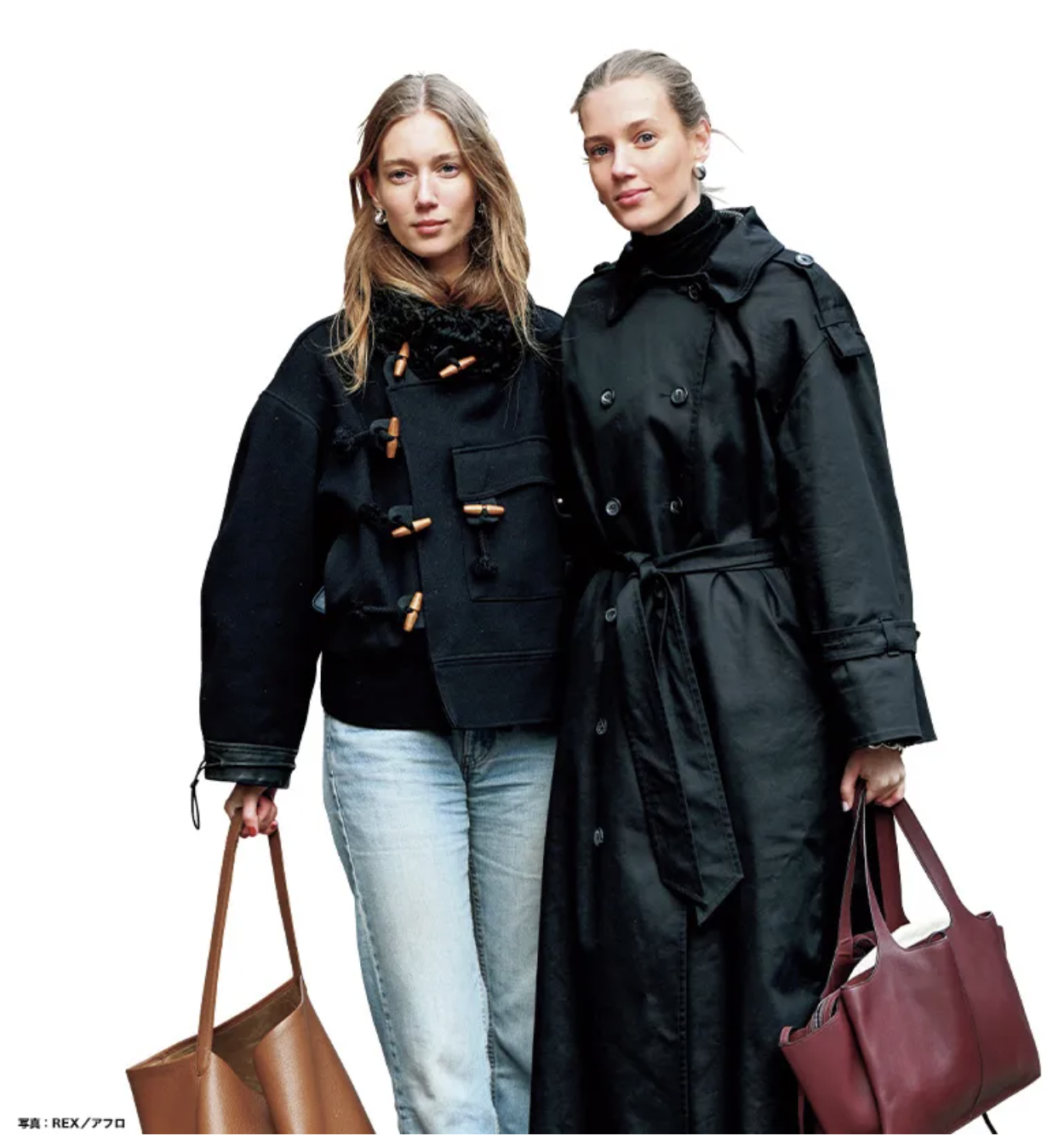 例年、冬になると見覚えのあるアウターを着こなしている2人の姿が。彼女たちが大切にしているのはアウターこそ「長く愛せる上質ベーシック」であること。トレンドに左右されないバルマカーンコートは2人の定番。あえてメンズのようなオーバーサイズを選び、肩の力が抜けたこなれた雰囲気に仕上げるのがセオリー。裾捌きが良いAラインシルエットは羽織るだけでスタイルが完成。