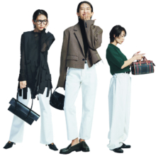 彼女たちが素敵なのは、特別ではない“普通の服”をどう着るかにセンスがあるから。それぞれのスタイルを落とし込んだ、アッパーハイツとのコラボデニム2型をメインに、頑張らないのに素敵なコーデを真似っこ!