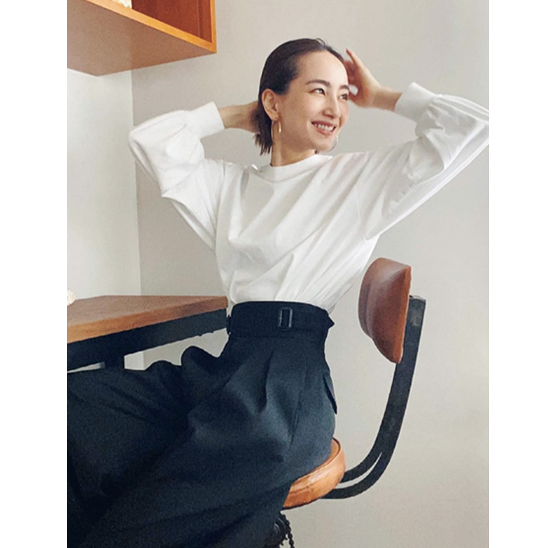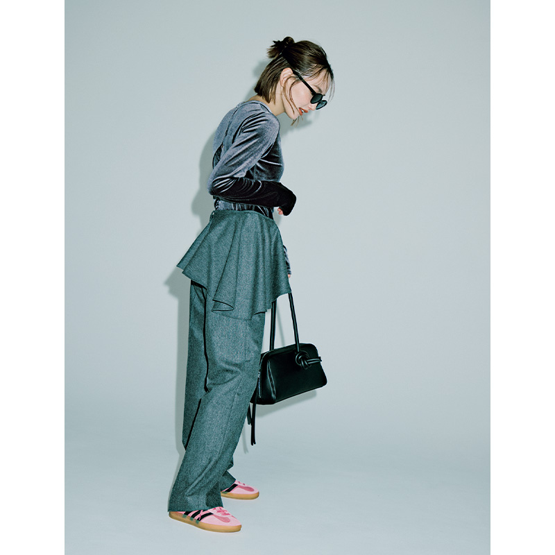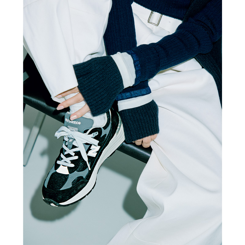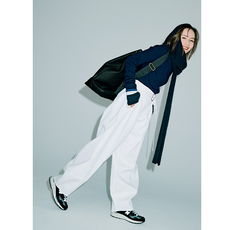 「ロゴ小さいのがいいんじゃない?」という夫のアドバイスもあって新調したNew Balanceの992は夫婦でお揃い!黒ベースだから合わせやすく、 さりげにスタイルアップできるボリュームソールも気に入っています。スニーカーのサイズはあえて2cmアップして大きめをチョイス。履きやすいし、こなれて見えるテクニックのひとつ!