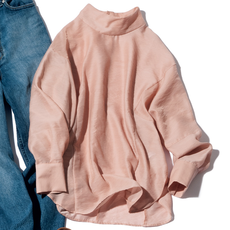 息子の参観日やお仕事のきちんとシーンに。パンツインしやすいシアー素材。