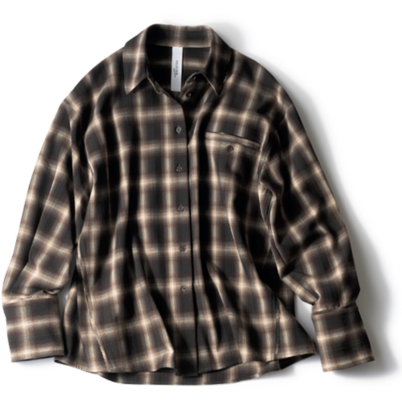 ベロアロンT+ワイドスラックスを固定セットに。オーバーシャツはあえて羽織らず、高めの位置でウエストマークすることでスタイルアップ。なつかしく感じるオンブレチェックはモノトーンなら、ほっこり見えせず大人カジュアルに着地。