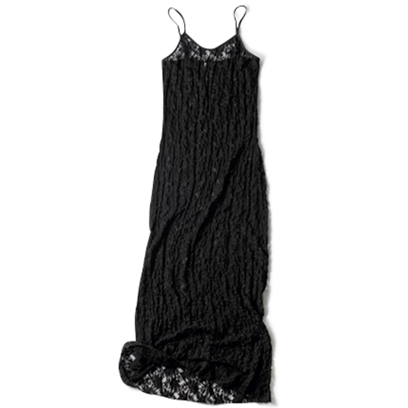 シアー素材の甘レースワンピを覗かせて軽やかに映える