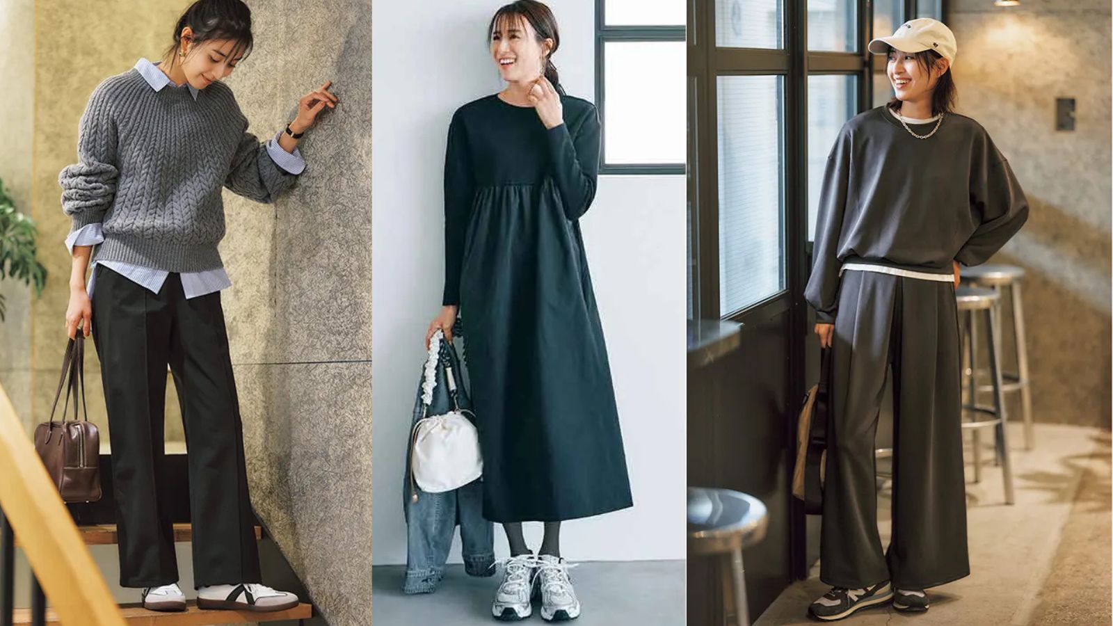ニット×パンツのオシャレ度UP。